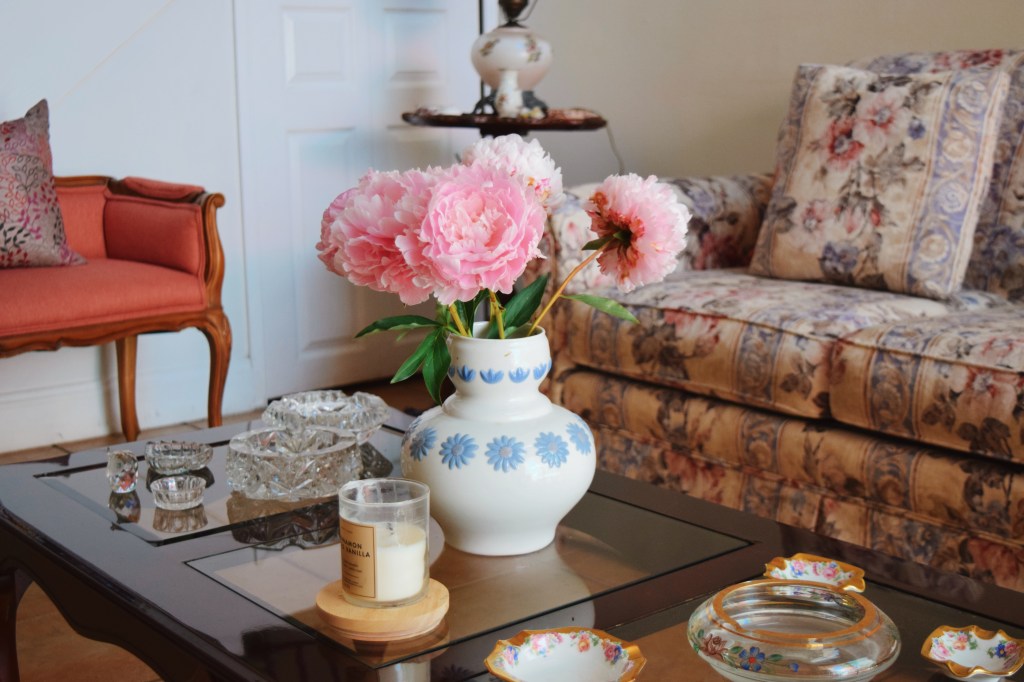 For years I had dreamed of placing beautiful peonies like these in the center of my home, and it has finally come true. I found these at Wholefoods recently, after realizing the local grocery store by the corner of my house just wasn’t cutting it for this type of quality. If you guys know me, you know I love vintage charm, and honestly, maximalism inside a home. I feel like it’s part of what adds character and makes a house a home.